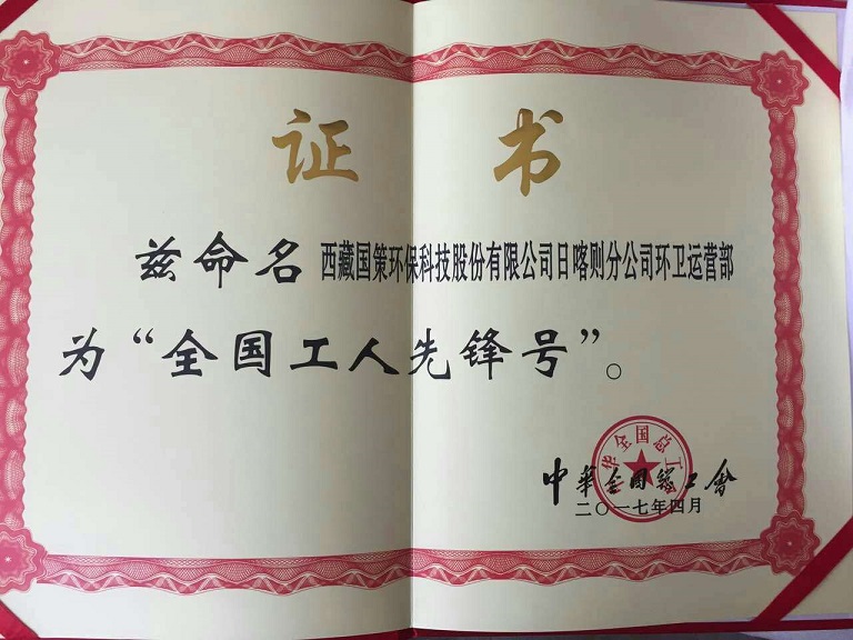 日前,全國總工會(huì)召開“五一”新聞發(fā)布會(huì), 通報(bào)了一批“2017年全國工人先鋒號”。西藏國策環(huán)??萍脊煞萦邢薰救湛t分公司運(yùn)營部全體成員在日常工作中勞心勞力、風(fēng)雨無阻、踐行無私奉獻(xiàn)的城市“美容師”精神,被授予“2017年全國工人先鋒號”,是我司首獲此殊榮。