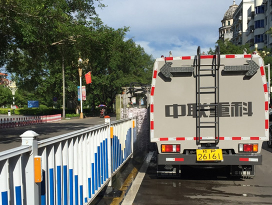 ▲對(duì)國(guó)門口岸旅游熱點(diǎn)景點(diǎn)進(jìn)行沖洗作業(yè)