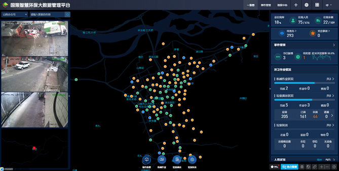 國策環(huán)保在投入機械化同時配套完善了智慧環(huán)保平臺建設,以感知設備、智能終端等構建的物聯(lián)感層與智慧環(huán)保平臺共同發(fā)揮了對環(huán)衛(wèi)各要素等進行全程實時管控和作業(yè)優(yōu)化,國策各分級指揮中心實現了對工作人員的精準調配,提高了工作效率。與此同時來自于甲方對質量的監(jiān)管及公眾的投訴建議與國策智慧環(huán)保保持高效互動,更進一步改善城市公共環(huán)境質量。