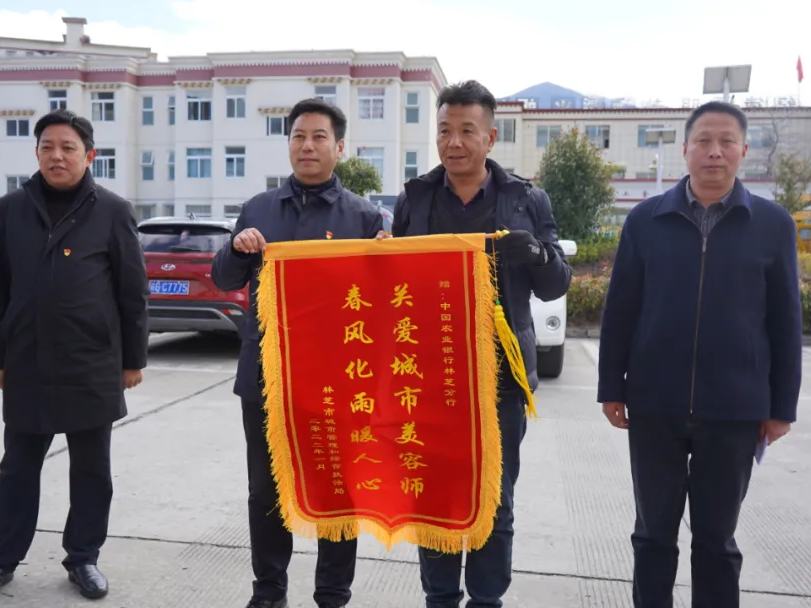 1月14日,中國(guó)農(nóng)業(yè)銀行林芝分行在林芝市城市管理和綜合執(zhí)法局開(kāi)展一線工人慰問(wèn)活動(dòng)。中國(guó)農(nóng)業(yè)銀行林芝分行黨委書(shū)記、行長(zhǎng)扎西達(dá)娃,黨委委員、副行長(zhǎng)格桑次仁,中國(guó)農(nóng)業(yè)銀行林芝分行辦公室、機(jī)構(gòu)業(yè)務(wù)部相關(guān)負(fù)責(zé)人,林芝市城市管理和綜合執(zhí)法局黨組書(shū)記、副局長(zhǎng)孟存軍,黨組成員、二級(jí)調(diào)研員周旭東,市城市管理和綜合執(zhí)法局辦公室、環(huán)衛(wèi)管理中心相關(guān)負(fù)責(zé)同志參加慰問(wèn)活動(dòng)。